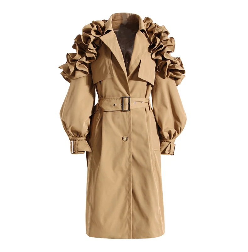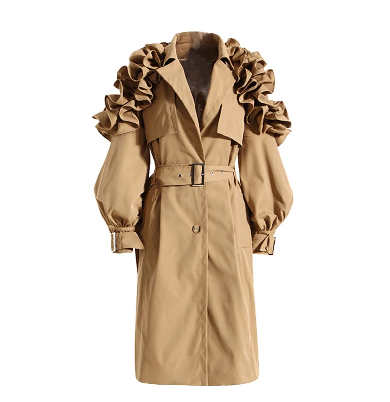 ترنش كوت نسائي طويل LAUTARO | معطف فاخر وأنيق بلون أسود أو كاكي لموسم الخريف